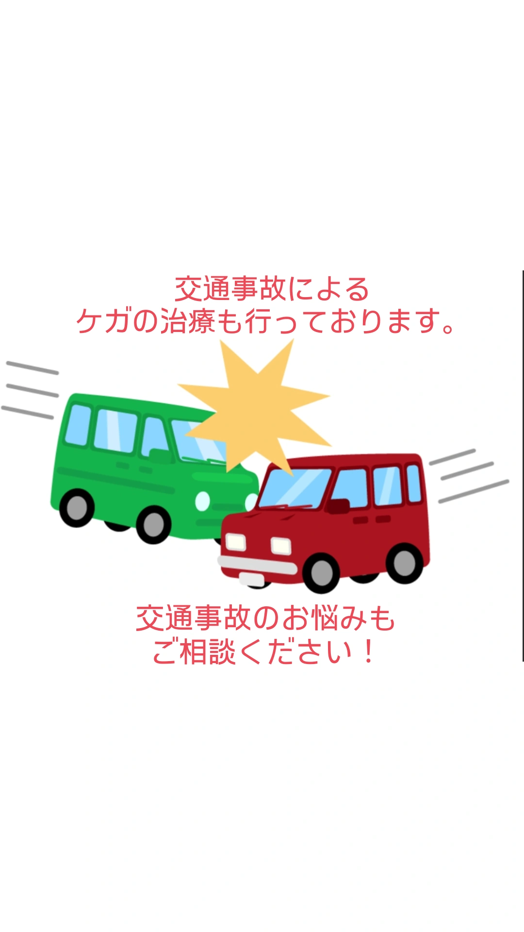 ・寝違え・ぎっくり腰やスポーツ障害・捻挫・打撲、交通事故などの痛みや怪我への施術。