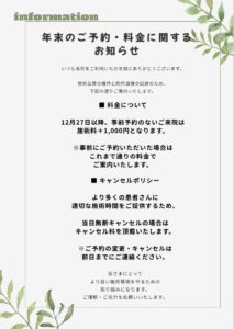 12/27~30の期間の施術料¥+1,000円を頂戴いたします。