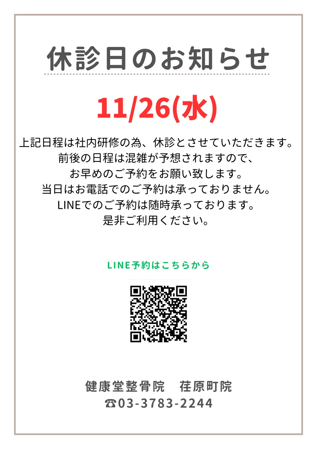 休診日のお知らせ📢
